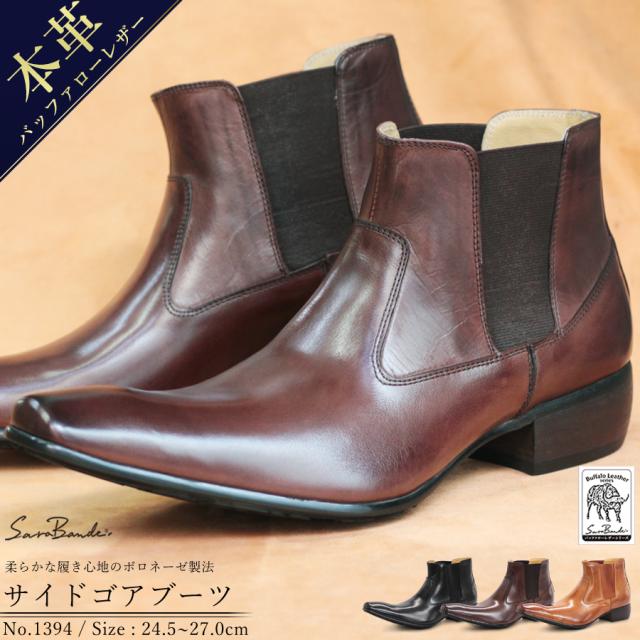 ブーツ メンズ 本革 サイドゴア 黒 バッファロー レザー ビジネス ビジカジ ブラック 3E No.1394 サラバンド