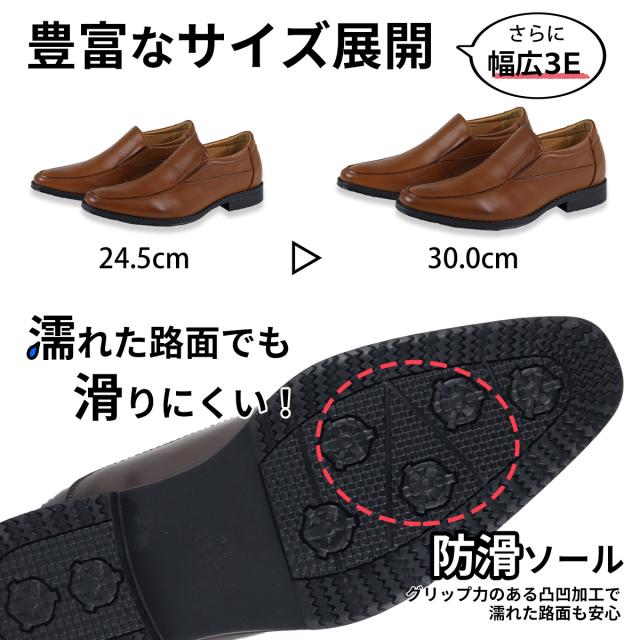 グリップ力のあるソールで濡れた路面も滑りにくい防滑仕様や、ゆったりと履ける幅広3E仕様などビジネスマンにとってうれしい機能も詰まっています。