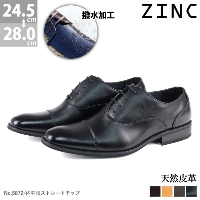 ビジネスシューズ ビジネス シューズ メンズ 天然皮革 靴 革靴 撥水 ストレートチップ 内羽根 No.5872 24.5cm〜28.0cm 黒 ブラック 茶 ブラウン ZINC ジンク 587