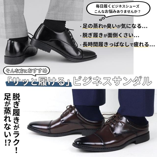 サンダルタイプのビジネスシューズで、スーツと合わせても違和感なくご使用いただけます。