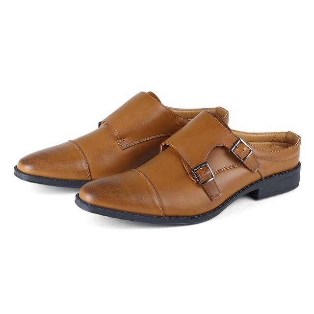 ビジネスシューズ ビジネスサンダル ビジネス サンダル メンズ 靴 革靴 紳士靴 ダブルモンクストラップ ストレートチップ 滑りにくい 防滑 スリッパ ビジネスシューズ 3cmヒール No.2695 25.0cm〜28.5cm 黒 ブラック AAA+ ビジネスサンダル 269 【人気商品】