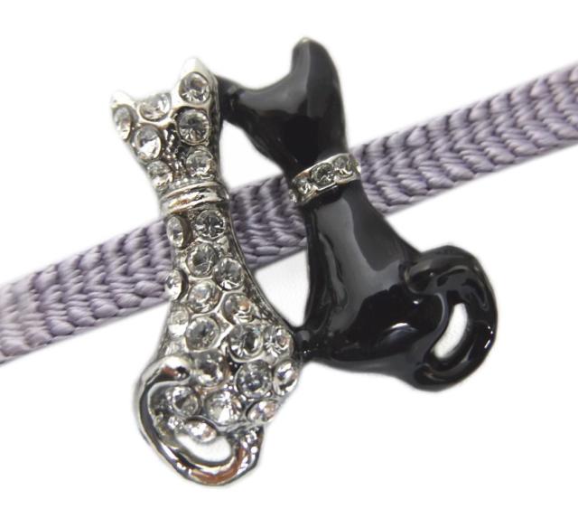 帯留め 帯止め ラインストーン付 黒シルバー猫 ねこ ネコ 箱入り 着物 きもの 浴衣 帯どめ