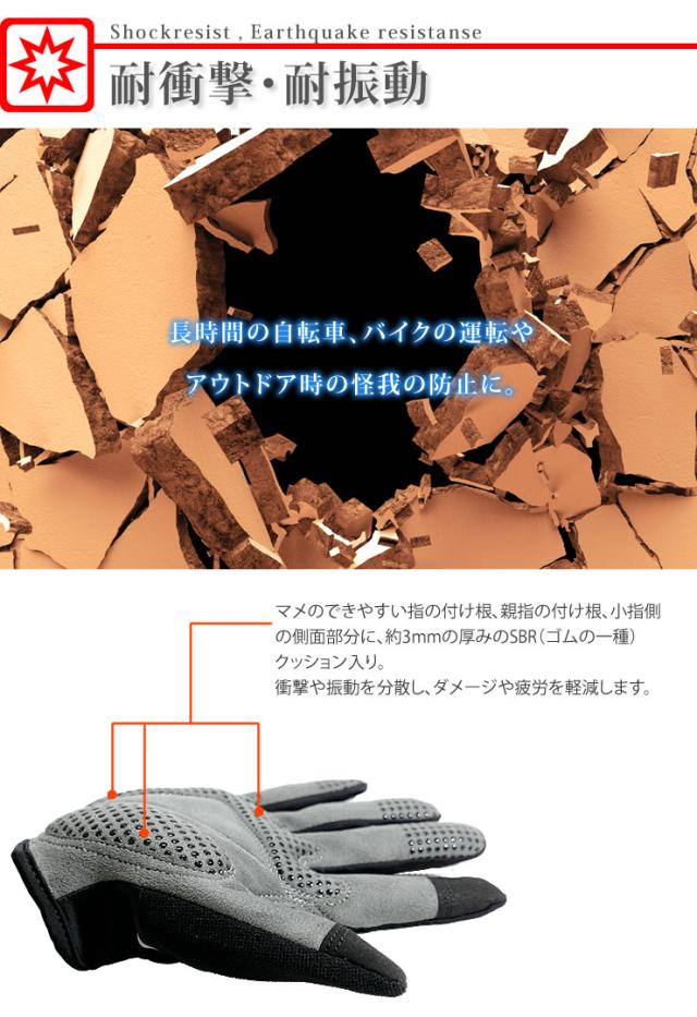 手の平側は肉厚のクッションで衝撃や振動から手をガード。