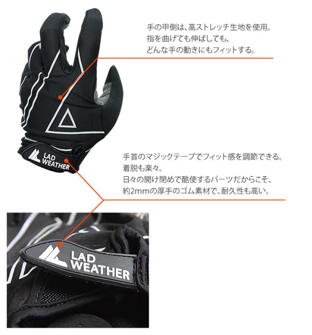 薄手で滑らない、耐衝撃のアウトドア・グローブ。 ラドウェザー LAD WEATHER ladgloves002