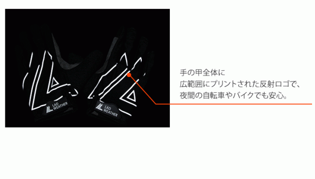 手の甲全体に広範囲にプリントされた反射ロゴで、