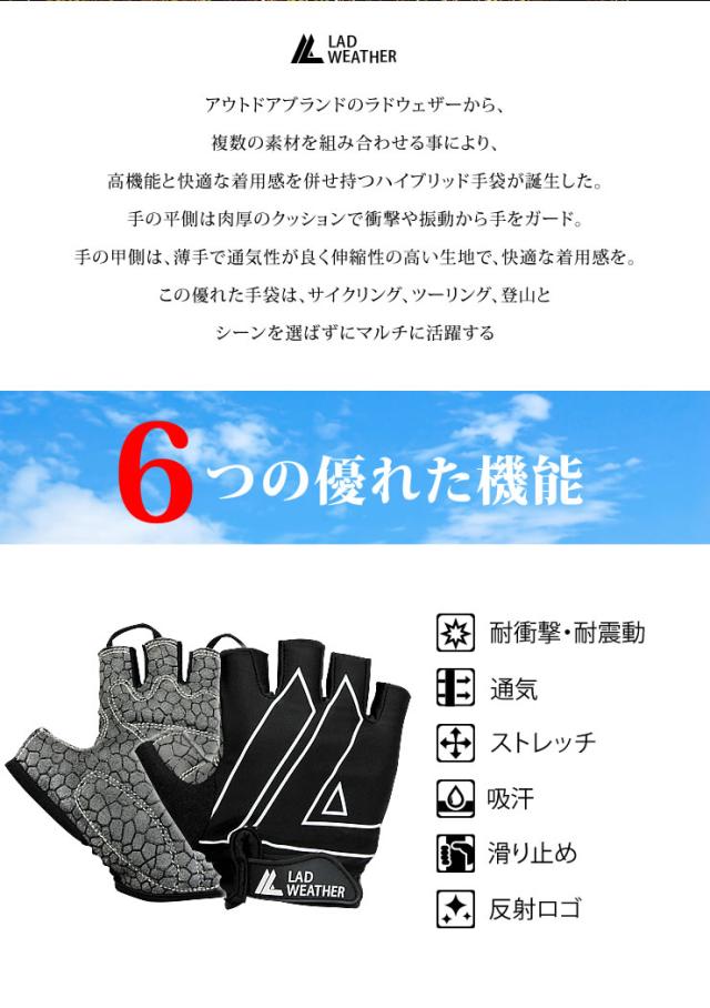 サイクルグローブ 手袋 サイクリンググローブ ハーフフィンガー 自転車用 バイク用 ツーリング 指ぬき