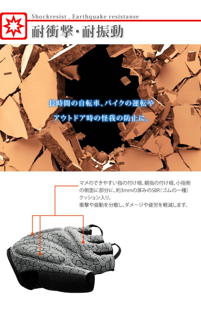 手の平側は肉厚のクッションで衝撃や振動から手をガード。