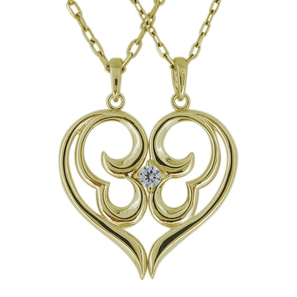 ネックレス ペア シンプル ハート メンズ レディース ダイヤモンド 4月誕生石 10金