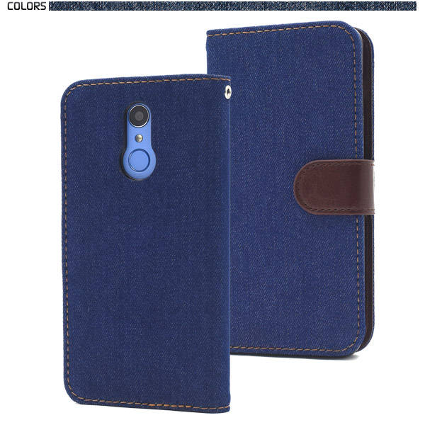 スマホケース LG style L-03K用 手帳型 横開き シンプルデニムケースポーチ 保護ケース 背面カバー 青色 ブルー