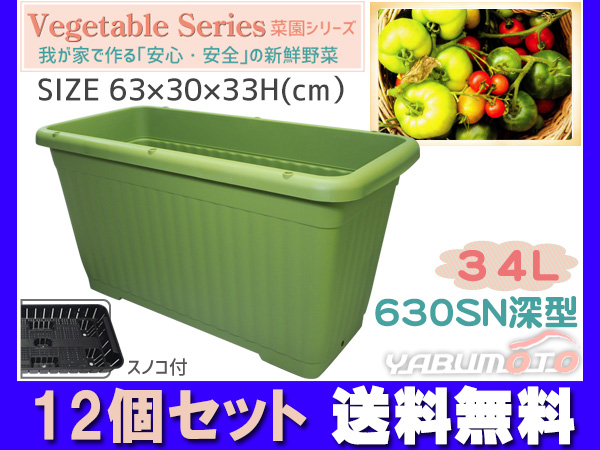 野菜 プランター 菜園 34L 630SN深型 12個セット 63×30×33H(cm) 深型 スノコ付 グリーン アイカ aika 法人のみ配送 送料無料