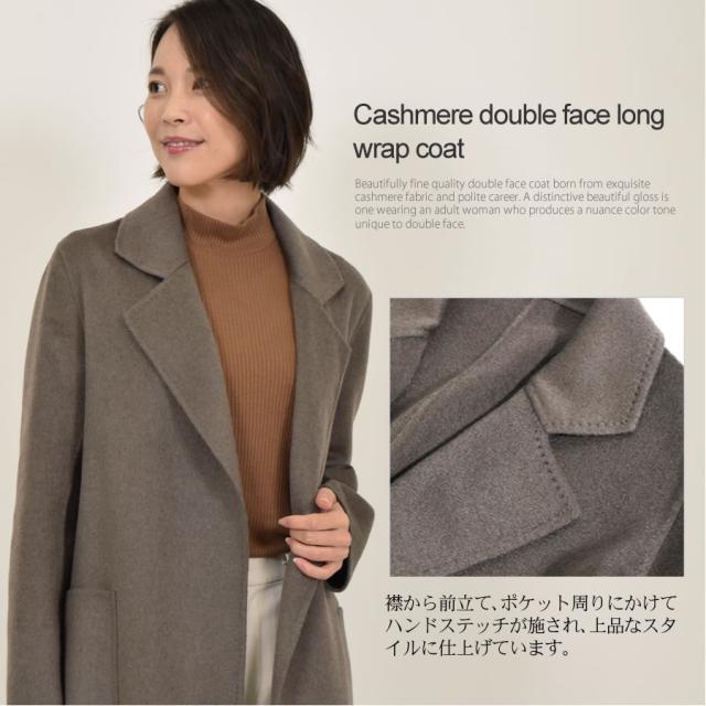 カシミヤコート カシミア 100% ダブルフェイス ラップ コート (CA3075)[Merfirge]