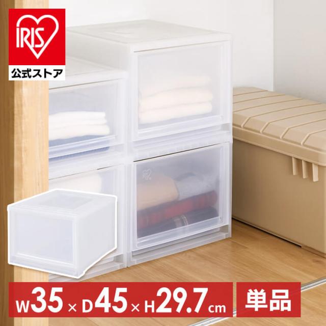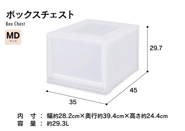 収納ボックス 引き出し 単品 一段 収納ケース 幅35 奥行45 高さ29.7 衣類収納ケース チェスト 完成品 クローゼット タンス 衣装ケース アイリスオーヤマ 収納 クリア コンパクト 積み重ね プラスチック ボックスチェスト MDサイズ 深型 MBC-MD *