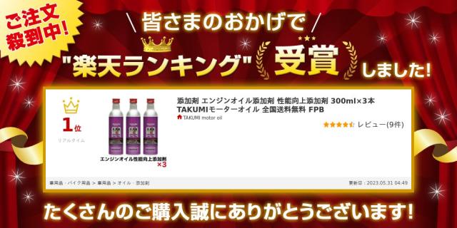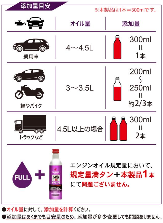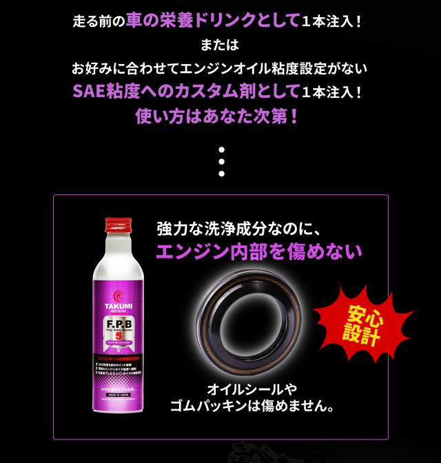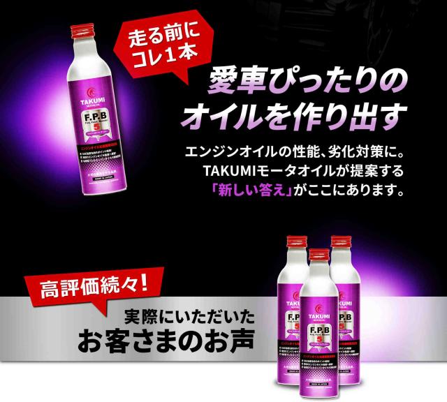 添加剤 エンジンオイル性能向上剤 エンジンオイル添加剤 性能向上 SAE粘度増強 理想の粘度へ 300ml×3本 ガソリン車 ディーゼル車 1本入れるだけ TAKUMIモーターオイル 送料無料 FPB