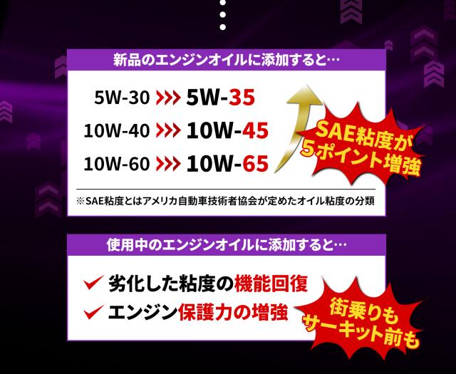 効果その?(新品のエンジンオイルに使用):SAE粘度5ポイント増強(例)5W-30→5W-35