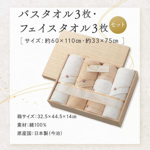 バスタオル3枚・フェイスタオル3枚セット 木箱入り