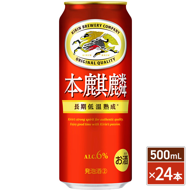商品名 キリン 本麒麟 500mL×24本 容量 500mL×24本 原材料名 発泡酒(国内製造)(麦芽、ホップ、大麦、コーン、糖類)、大麦スピリッツ アレルギー特定原材料 − 賞味期限 商品の発送時点で、60日以上あるものをお届けいたします 保存方法 常温 アルコール度数 6%