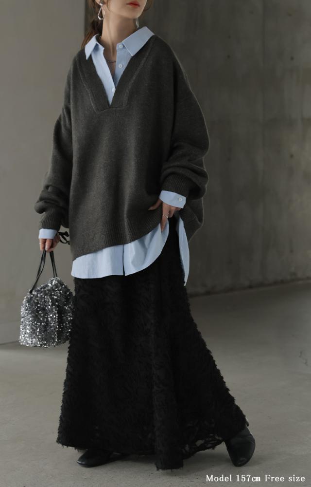 お尻まですっぽり隠れる丈感とドルマンスリーブで、ゆったりとしたデザインとなっており、