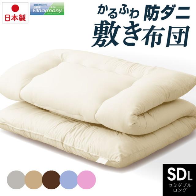 かるふわ 防ダニ 敷布団 セミダブルロング 日本製 防ダニ抗菌 敷き布団(固綿無し) セミダブル ロング 国産 日本製 洗える しき布団 抗菌 防臭 防ダニ 敷き布団(代引不可)【送料無料】