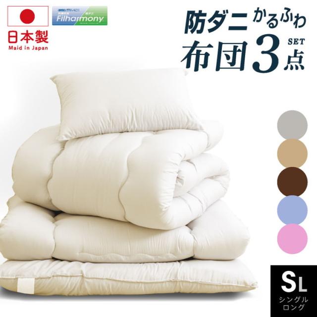 防ダニ 抗菌 かるふわ 布団3点セット シングルロング 日本製 防ダニ抗菌 布団3点セット(固綿なし) シングル ロング 布団セット 敷布団 シングルロング 布団干し ふとんセット(代引不可)【送