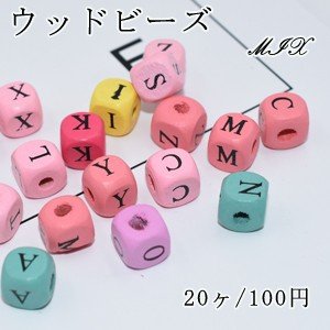 ウッドビーズ MIX カラーミックス アルファベット キューブ 10×10mm【20ヶ】
