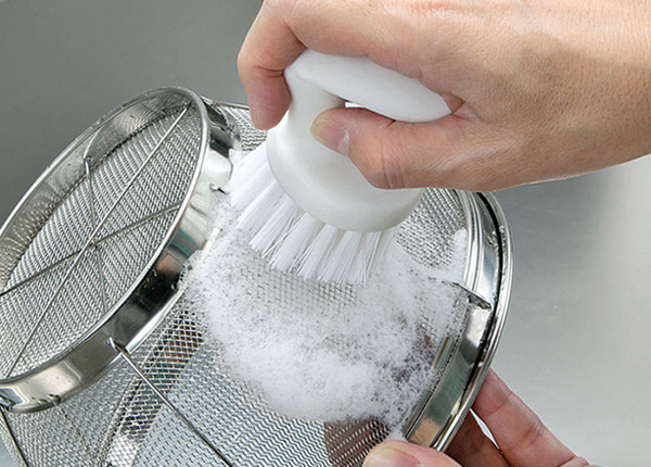 通常のスポンジでは洗いにくいザルやまな板の網目に詰まった汚れを、コシの強いポリプロピレン毛でしっかりかき落とせます。