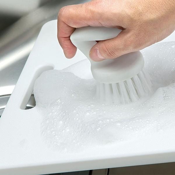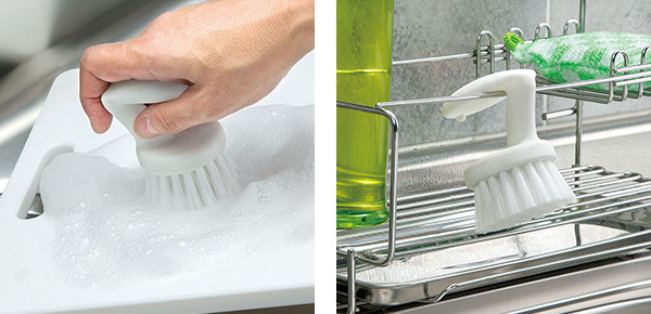 ●スポンジでは洗いにくいザルやまな板の網目に詰まった汚れを、コシの強いポリプロピレン毛でしっかりかき落とせます。