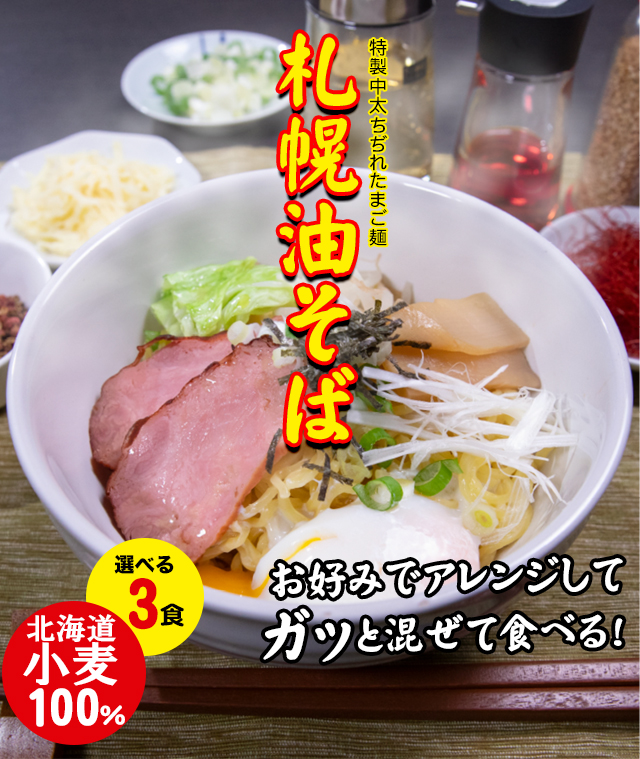 【メール便/送料無料】お試し 札幌油そば 選べる3食セット / 味噌味 みそ味 ミソ 醤油 しょうゆ 塩 しお 塩味 海老 えび エビ カレー カレー味 ピリ辛 3食 3人前 麺 札幌ラーメン つけめん らーめん 北海道 ちぢれ麺 太麺 高レビュー 人気