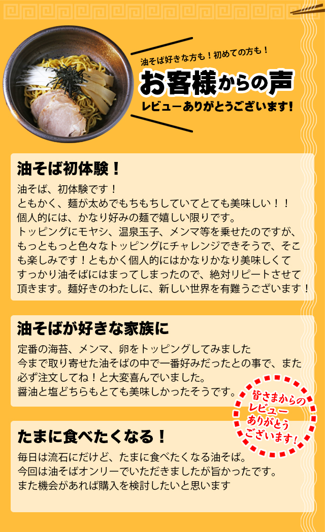 発売以来累計30,000食突破!!! \1度食べたらやみつきの、油そば♪/ |