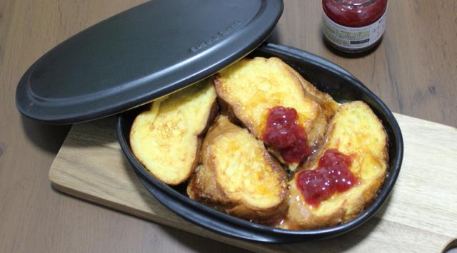 上の写真は、フレンチトーストが焼きあがったところです。