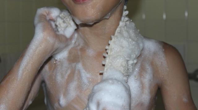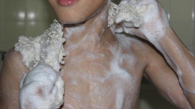 3)きつく擦らず肌を軽く撫でるように洗います。