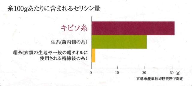 キビソには、繭の内側の糸に比べて、セリシンが約1.5倍以上も含まれています。