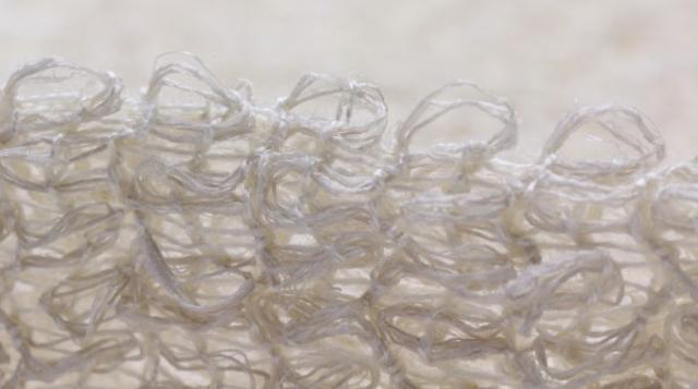 キビソ肌友だち輪奈は、ゆったりとループ状に編むことで、一般的なシルクタオルの欠点とされる、「泡立ちの悪さ」を改善。