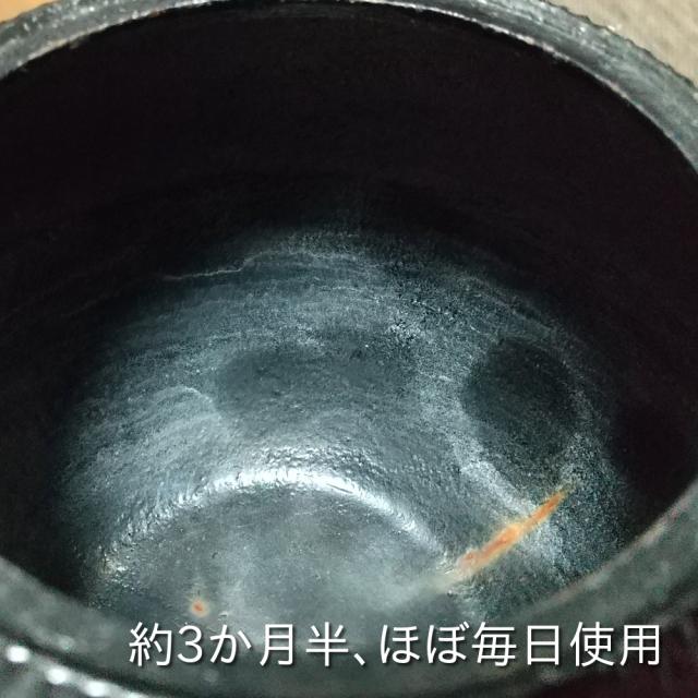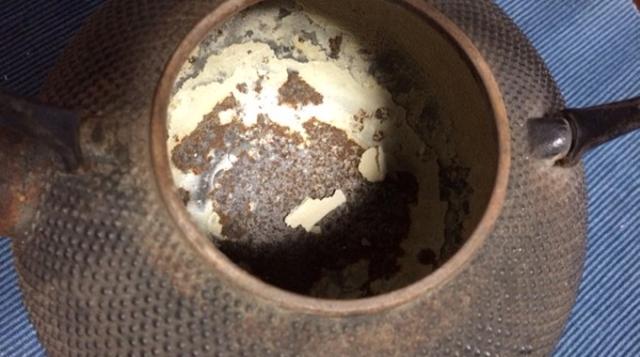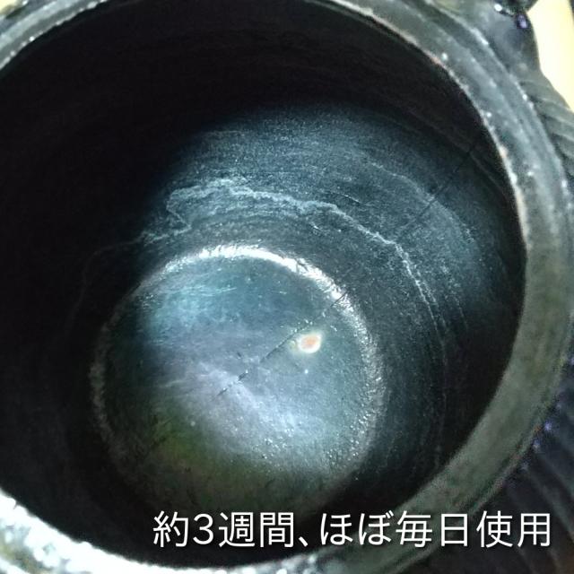 南部鉄器は、数日で白っぽい湯垢が付いてきます。