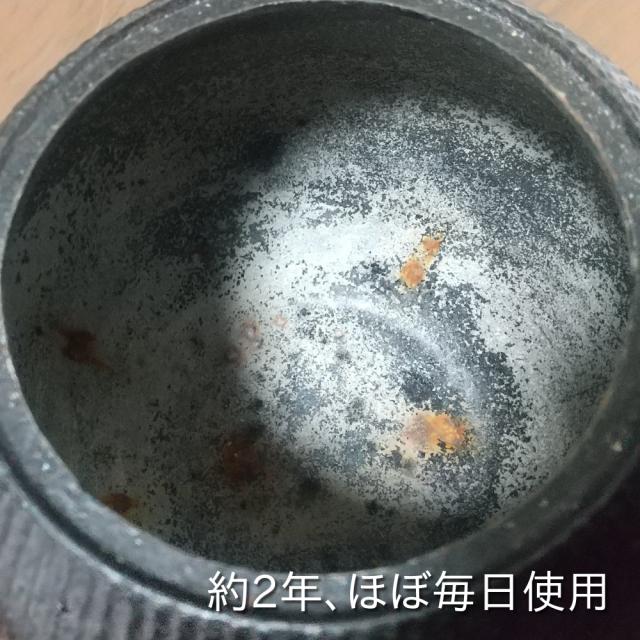 南部鉄器を使用していくと、内部に錆びたような赤褐色の斑点が発生します。