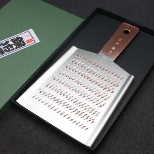 銅器職人の勅使川原(てしがわら)さんが、昔ながらの製法で一つひとつ手造りする銅製おろし金です。