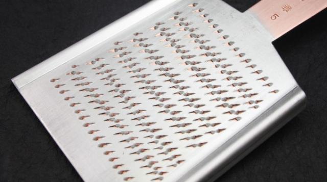 手打ちによってできる不規則に並ぶ刃は、大根やわさびなどを上下させる毎に次々とかかり、楽におろすことができます。