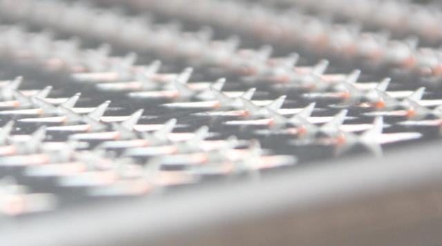 鏨(たがね)を使い、ひと目ひと目手で打っている勅使川原さんのおろし金の刃は、ご覧のようにとても高く鋭くなっています。