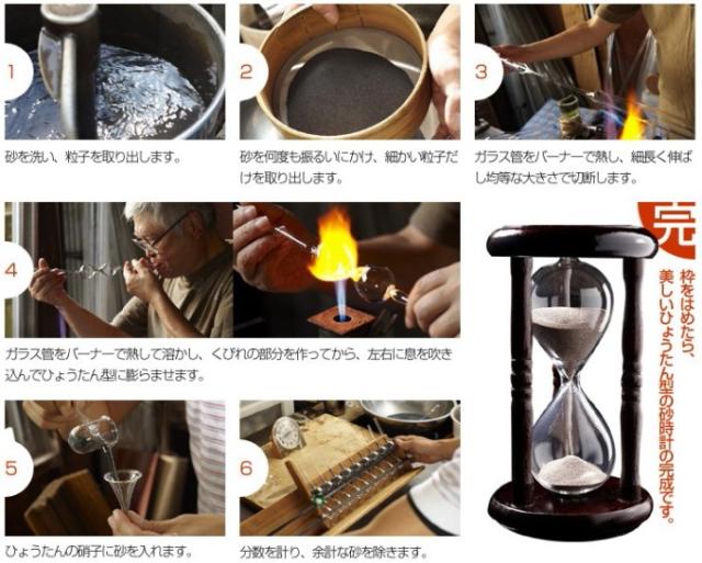 砂時計 5分 木製 砂鉄 ひょうたん型 金子硝子工芸 日本製 職人の技 手吹きガラス レトロ クラシック 癒しの小物