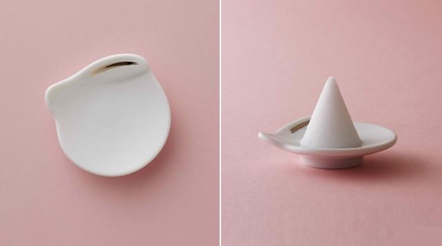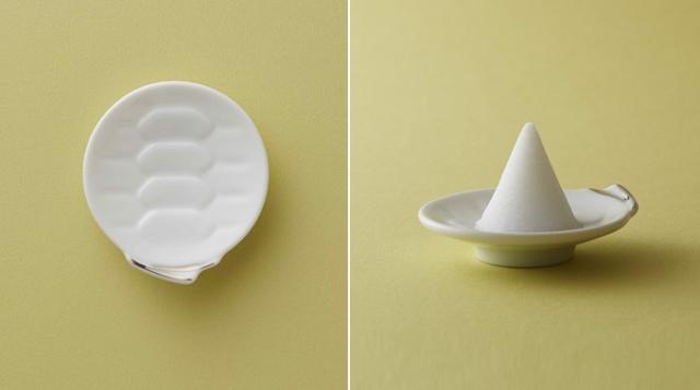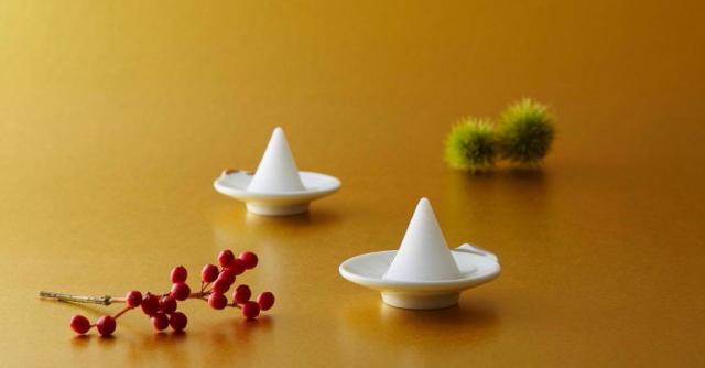 原料の配合にこだわった透明感のある白磁気を使い、盛り塩器は素地を一つひとつ熟練の手によって磨き、まるで塩を盛ったようにも見えるざらつきのある仕上げ。