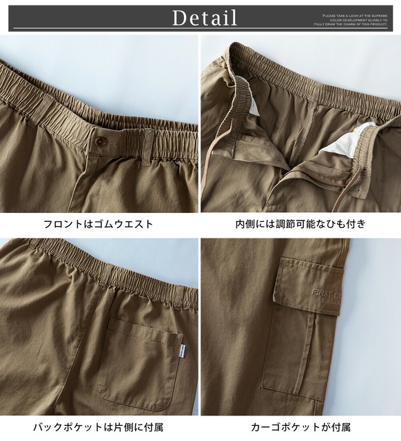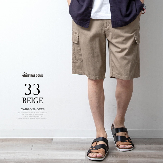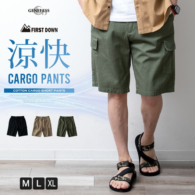 カーゴパンツ メンズ ハーフパンツ カーゴ パンツ ボトムス 夏物 夏服 ズボン ショートパンツ カジュアル 短パン 膝丈 涼しい ファーストダウン カーキ 全3色
