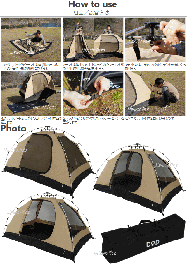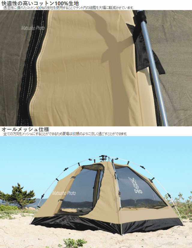 DOD テント ワンタッチテント カンガルーテント ポリエステル 2人 コンパクト ワンタッチ構造 アウトドア キャンプ ワンタッチカンガルーテントS T2-616-TN タン