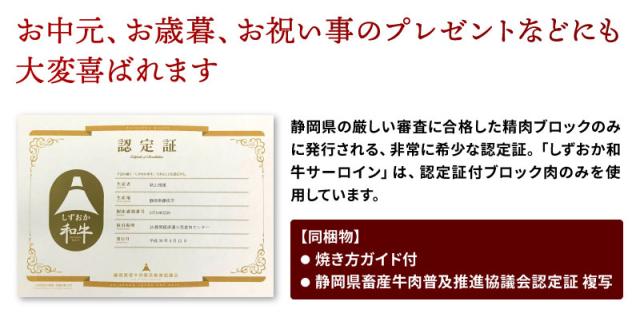 黒毛和牛 しずおか和牛 サーロインステーキ400g(200g×2枚) ギフト 肉ギフト プレゼント 高級 和牛 お肉 内祝い 結婚祝い 出産祝い 食べ物