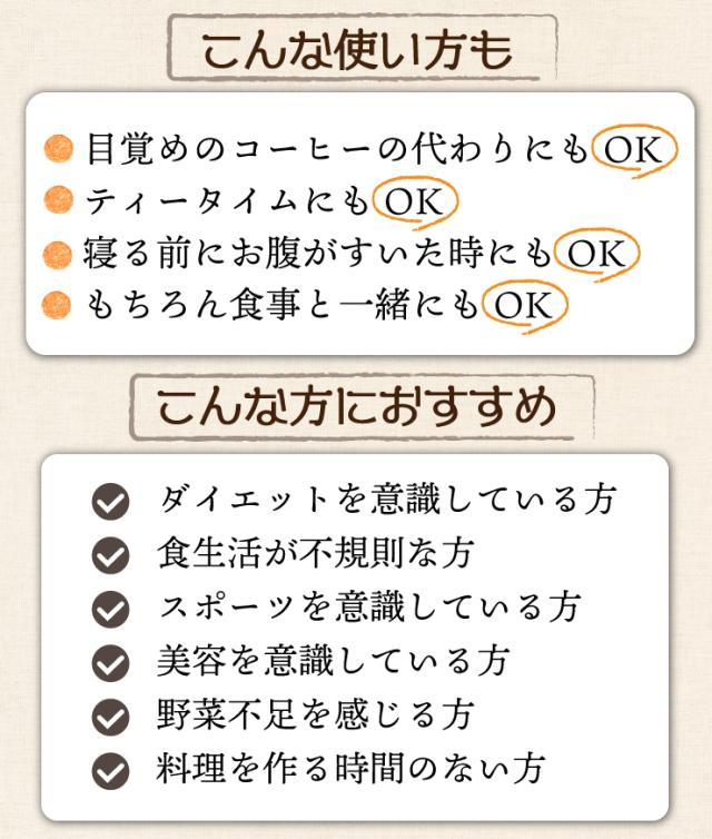 - 大変美味しいスープです。飲みやすく、量も丁度良いので重宝しています。