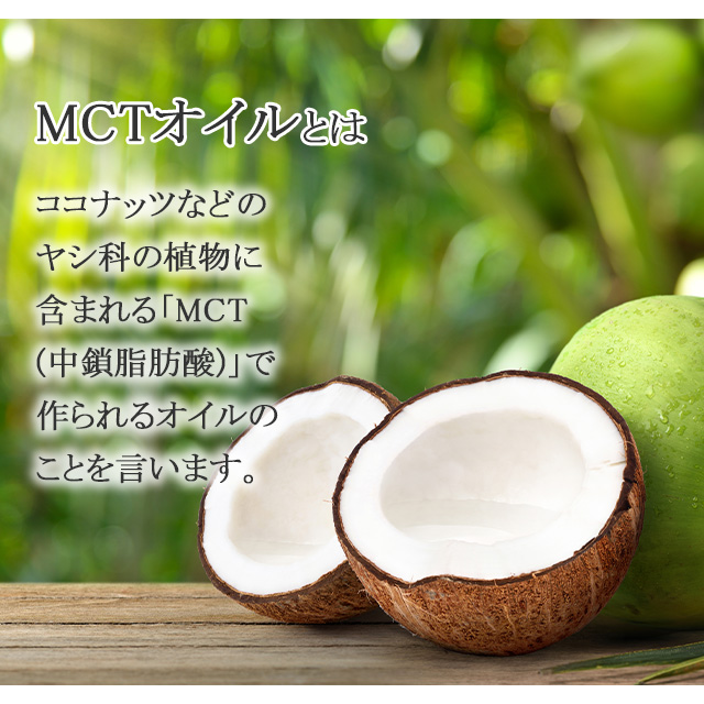 | 健康的にダイエット! MCTオイルは中鎖脂肪酸のことで、植物に含まれる脂肪酸です。 代表的なところではココナッツオイルですが、ココナッツオイルよりも、MCTオイルの中鎖脂肪酸の方が多いといわれています。 テレビで話題になり、ダイエットや美容のサポートに幅広く注目されている素材です。 ▼こんな方におすすめ ・ダイエット中の方 ・美容が気になる方 ・エイジングケアが気になる方 | |