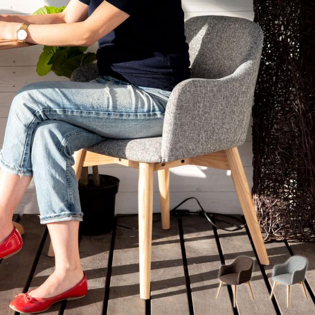 チェア 肘掛付き グレー ブラウン ファブリック 布 天然木 カフェ 小さめ ダイニングチェア おしゃれ