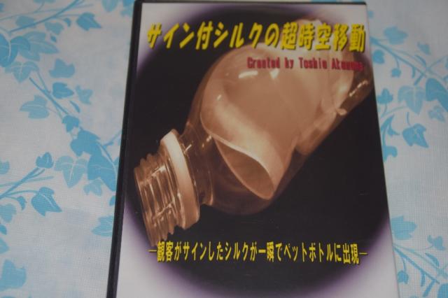 市販のペットボトルに、観客のサイン付きシルクが一瞬で入り込みます。もちろん演技前後に全てを観客に改めてもらう事も出来ます。本当にビジュアルな現象で、さらにシルク・ペットボトルとも観客にプレゼントとして差し上げる事も可能です。解説DVDが付属していますので、簡単にマスターする事が出来ます。
