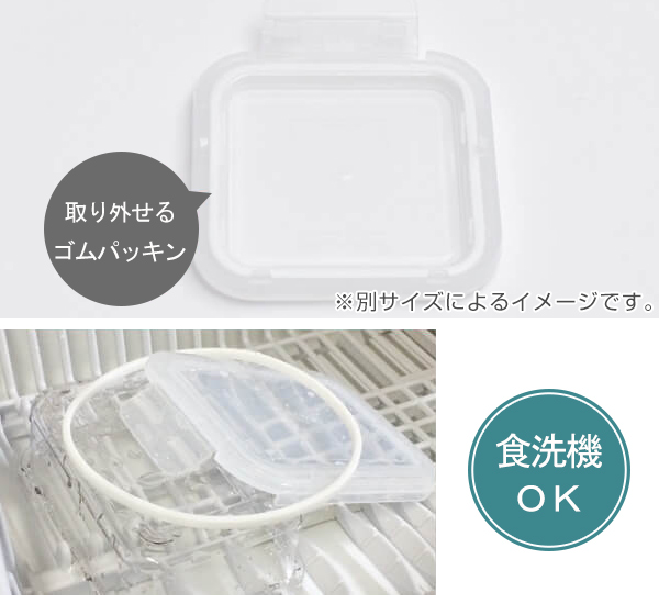 フタに付いているパッキンは取り外して洗うことができるので衛生的です。食洗機対応でお手入れも簡単です。
