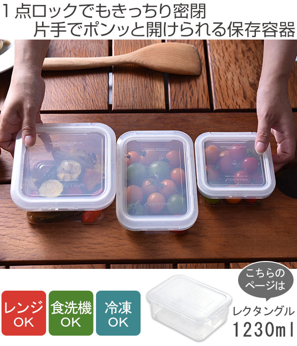 保存容器 片手でPON 1230ml レクタングル 密閉 ( 食洗機対応 電子レンジ対応 冷凍庫対応 長方形 冷凍対応 密閉容器 密閉保存容器 食品保存 1点ロック プラスチック製 保存容器 プラスチック)