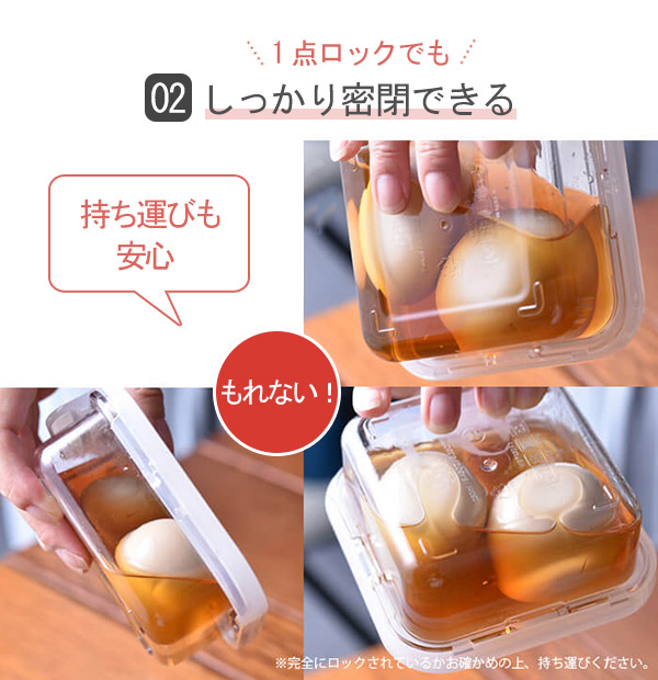 1ヵ所のみのロックでもきっちり密閉されるため、汁物を入れても大丈夫。持ち運びも安心です。