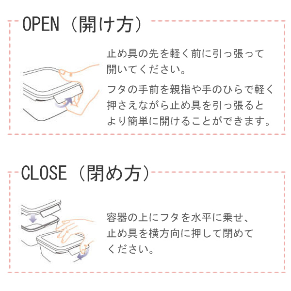 1ヵ所のみのロックでOKの画期的な保存容器です。1点ロックなので、片手でポンッと開けられます。フタの開閉がラクにでき、調理のちょっとした時短にもつながります。